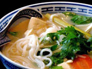 • First, dunk noodles in a pot of boiling water. Cover the pot and turn off the heat. Allow the noodles to soften in the hot water while you prepare the soup.