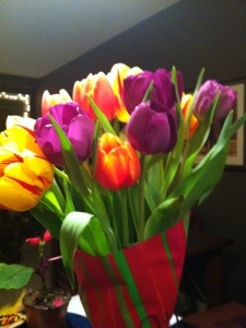 It’s the rituals that I miss. I loved phoning the florist near my mom’s house and asking for the spring bouquet of tulips. I loved asking if the Austrian gentleman could deliver them. I loved talking to my mom and hearing her say, “Oh you know what Tess, that flower delivery man LOVES ME. He’s always flirting with me.” (what this means is that my mother was flirting shamelessly with him). I loved the fact that her birthday falls fortuitously close to the Oscars, the single most important event of the year for my mother and consequently for us. The Oscars were better than her own birthday, better than her childrens’ birthdays, better than Christmas. Probably not better than John Lennon’s song Imagine which she loved dearly. The Oscars, you see, were the time where we forgot everything and imagined for a few short hours that we were stars, dressed and ready to be glorious. The ritual is so ingrained that my niece skyped the entire Oscars for me last year when I was sick in bed with pneumonia and without cable . Desperate times call for desperate measures.