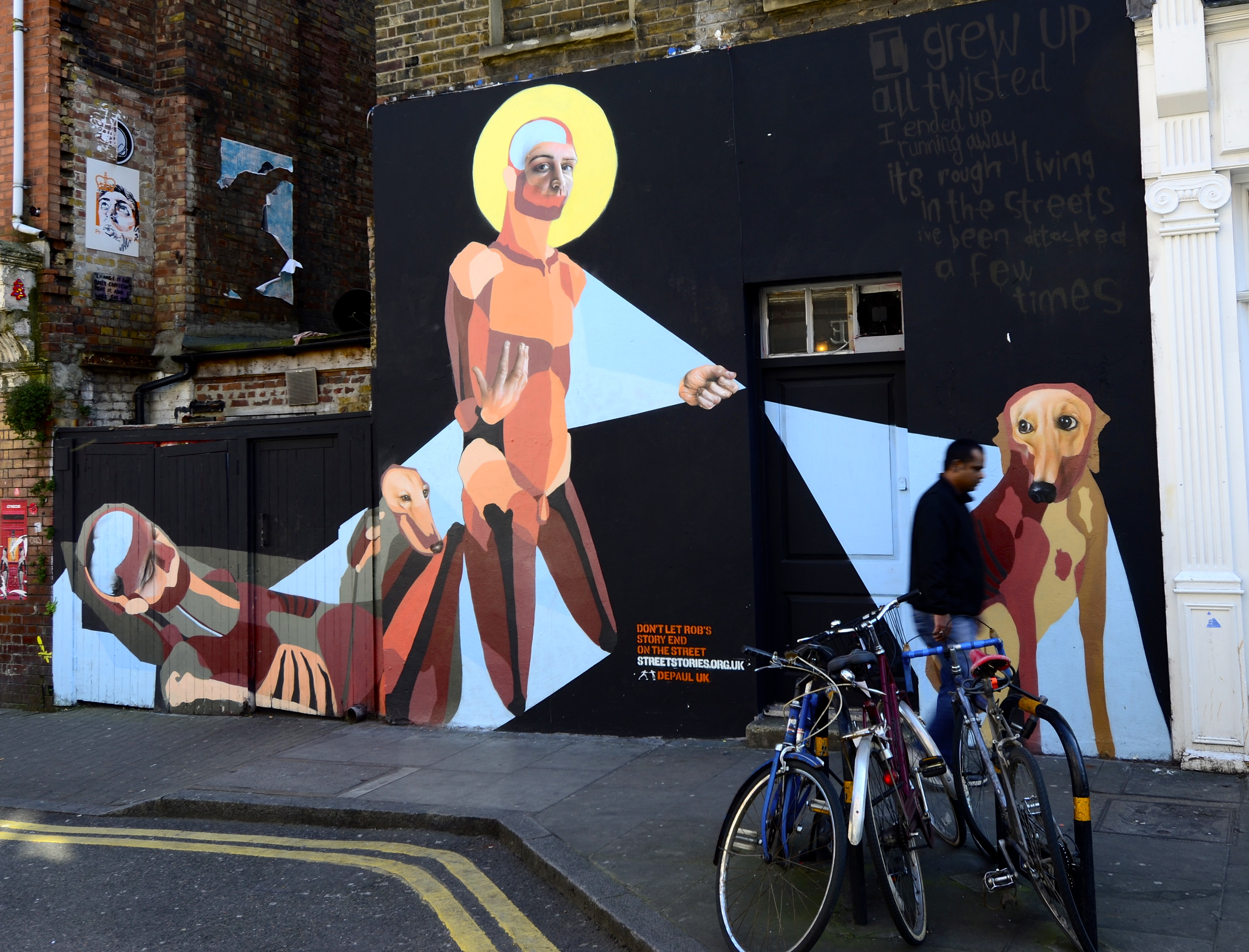 Dog in fullLone RangerIt’s the unexpected that often tricks you.  I expected to love London. I expected to love all the things I talked about in this blog post here. What I didn’t expect was to having my eyes opened to seeing art in a brand new way and in places I wouldn’t have expected. Here you are in London with its centuries of history, beautiful public art, and culture galore and what I end up falling in love with is street art. Street art is painted on buildings either with or mostly without permission and therefore it’s largely temporary,and created by artists the average person wouldn’t know.