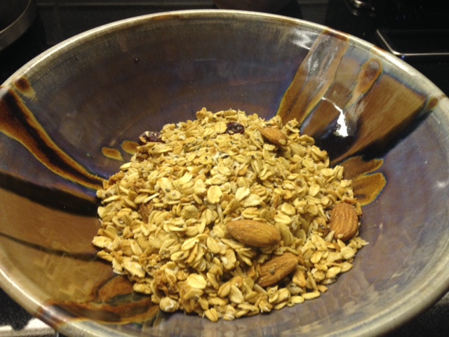 I discovered The Best Granola in the World because it was offered as a hostess gift to me. I had forgotten about it for awhile and it languished for a month at the back of the cupboard. When I finally tried some for breakfast I couldn’t believe how much I loved it. It was light and flavourful, crunchy and delicious. I’d abandoned eating granola awhile ago because I find most of them too heavy, too dry, too sweet, just generally too much! I managed to hunt down the owner of the recipe and I made my own batch this weekend and it’s equally as fantastic as what I received. It’s also a great starting point to innovate -add your own twists and turns. So hear it is. And the best thing…there’s not a drop of oil in this recipe!
